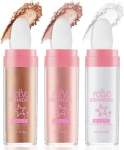 High Gloss Face Powder, 3pcs Fairy Highlighter Patting Powder, Face Body Glitter Powder Stick for Women, Sparkle Patting Glowing Powder for Festival Party Makeup, Body Brightens Shimmer