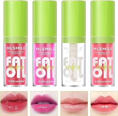 4Pcs Plumping Lip Oil, Makeup Lip Gloss Set Crystal Jelly Lip Care Oil Long Moisturizing Lip Gloss Tinted Lip Oil Non-Sticky Finish, High-Shine, 12 Hours Hydrating Light Liquid Lipsticks4PCS-A